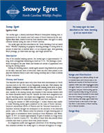 NCWRC and partnering organizations conduct coast-wide surveys for snowy egrets and other waterbirds every couple of years in an effort to monitor population trends and nesting locations. Biologists also post state-owned nesting sites during the breeding season to protect nesting birds from human disturbance. Many of these sites are on man-made dredge-material islands in the sounds. You can help snowy egrets and other nesting birds by respecting signs and staying off of posted areas. This simple act can go a long way toward ensuring birds have a successful breeding season. In addition, please dispose of garbage properly. Discarded fishing line and nets entangle and kill snowy egrets and coastal birds. These birds are a symbol of wild and healthy wetland ecosystems and with a little help, they will be around for future generations to enjoy.