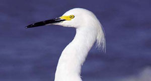 The snowy egret has been described as the “most charming of all our marsh birds.” Whether displaying its gorgeous breeding plumage or racing about in pursuit of small fish in shallow water, it is an exquisite sight, with gleaming white plumage, jet black beak and legs, and bright yellow feet.